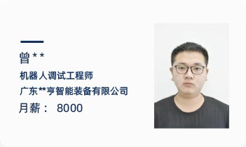 | 刘** | 安徽巨一 | 机器人调试工程师 | 6000 |